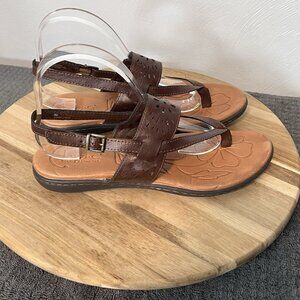 B.O.C Womens Sharin Sandals 9 Brown Embossed Leather Thong Slingback Strappy
