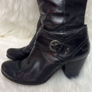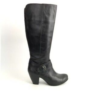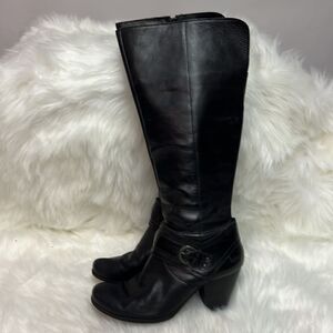 BOC Y2K Black Chunky Block Heel Saddle Belt Leather Tall Boots Size 7 Bin 21