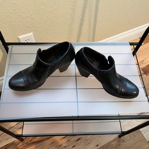BOC black leather booties. Stylish and in trend! Zippered sides for ease of putting on. 3” heel. Worn once