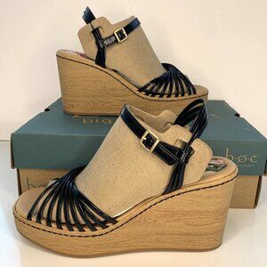NEW BOC by Born Catalina Wedge Sandals Strappy Platforms Black Size 10 NIB
