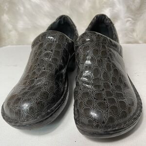 BOC Clog slip on dark gray croc prints size 10W pre owned in good used condition no tear clean normal wear.