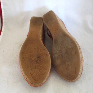 BOC Born Concept, deep pink or coral, "cork like", Wedge sandals with a pretty flower. Size 8 39.3 " high heel.