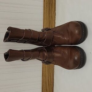 BOC women's brown chunky sole leather side zip bootie sz 7.
