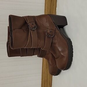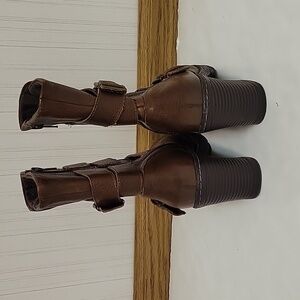 women's brown BOC born concepts leather side zip bootie sz 7. 3" stacked heel.