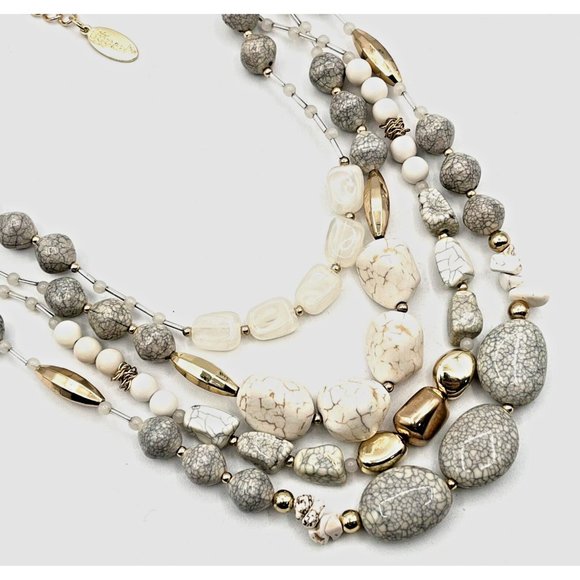 BOCAR Multi Layer Faux Howlite 4 Strand Statement Collar Beaded Necklace 18"Necklace has a 2 inch extender