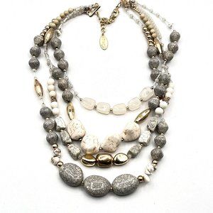 BOCAR Multi Layer Faux Howlite 4 Strand Statement Collar Beaded Necklace 18"