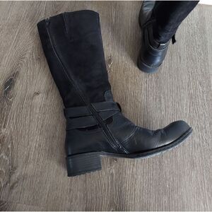 BOC Black Leather Suede Tall Riding Boots Moto Buckle Womens 7.5