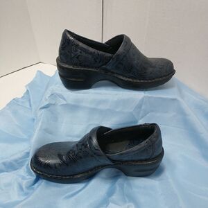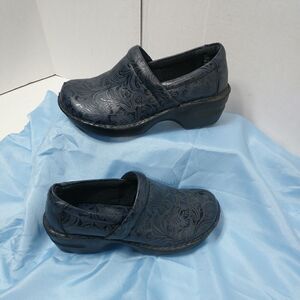 BOC Born Concept Peggy Clogs Blue Floral Embossed Nursing Size 7.5M Womens left shoe is skuffed as shown in picture but shoes still have alot of life