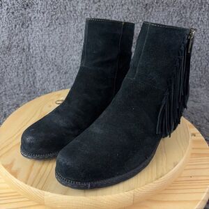 BOC Born Elise Boots Womens 9 Black Distressed Suede Fringe Boho Ankle Booties