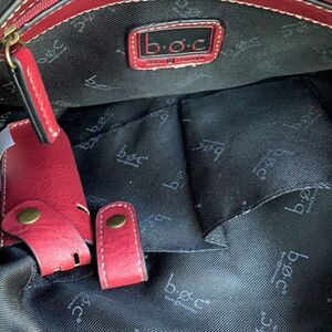 BOC BORN shoulder bag that extends to crossbody with appx 30” strap. NWOT never carried. Includes free gift of usb cable from Born. Tons of storage pockets/zippered for all your personal items. No spots stains or tears. The color is wine (reddish burgundy)