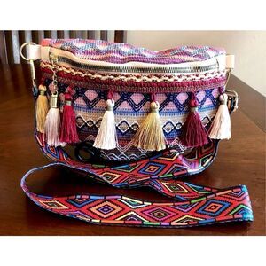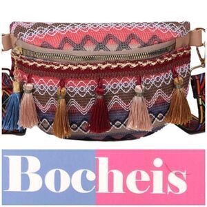 BOCHEIS - NWT Ethnic Style Boho Tassel Shoulder/Chest/Waist Bag in Woven Fabric