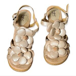 BOC, b.o.c. Born Hollyhock Leather Sandals, in a champagne metallic leather. Get ready for spring and summer. Cushioned footbed, heel height about 3.5"