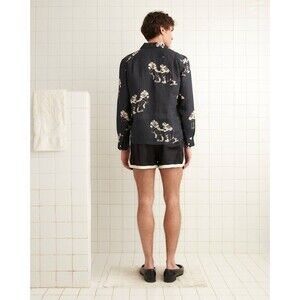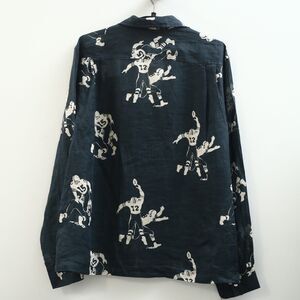BODE Football Silhouette Long Sleeve Shirt Men's Graphic Print Linen L 283792