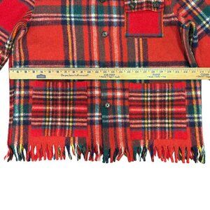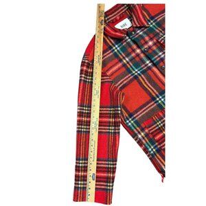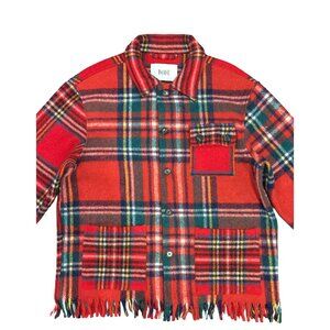 BODE Patchwork Plaid Wool Jacket Red Fringe Hem Button Up Unisex S
