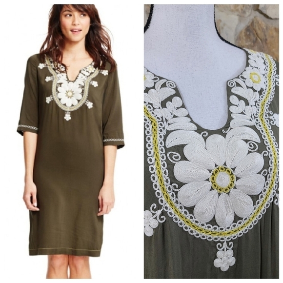 Lovely women's size 6 Boden dress. Green with white and yellow embroidery. Excellent condition!