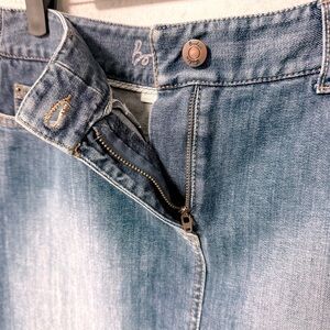 BODEN 6R WOMENS PETITE DENIM FLIRTY ARTSY POCKETS COMFY GIRLY MIDI SKIRT