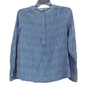 BODEN Blue Polka Dot Paula Popover Collarless Long Sleeve Tunic Women's US 4