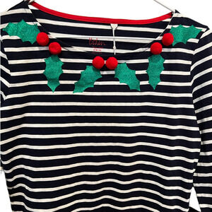 BODEN Christmas Breton Shirt In Glitter Pom Holly (US/2)