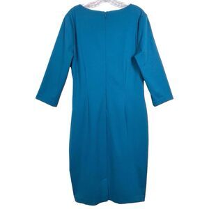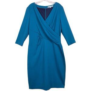 BODEN Connie Ponte Dress Size US 14 Pencil Faux Wrap 3/4 Sleeve Blue Turquoise