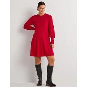 BODEN Cuff Detail Knitted Mini Dress Pointsettia Red Bishop Slv US 14R 14 NWT