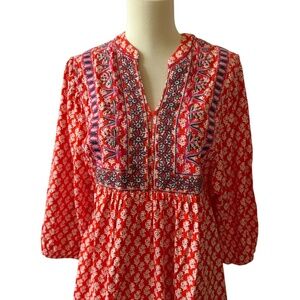 Size 10, modal blend, pull on, embroidered, floral print, 3/4 sleeve with elastic band, knee length.