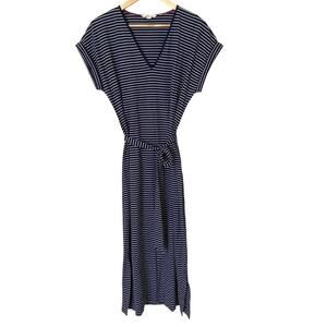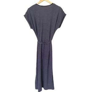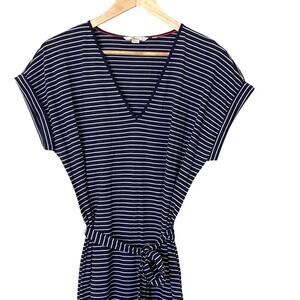 BODEN Ella Striped T-Shirt Cotton Modal Blend Midi Dress in Navy, Size 10 Petite
