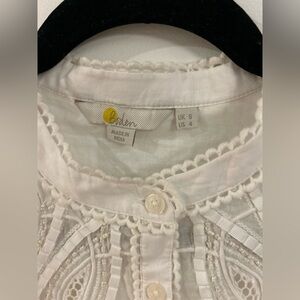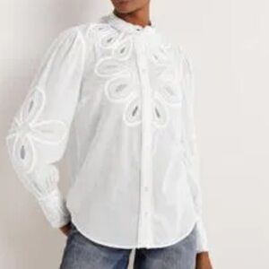 Statement trims take this lightweight cotton-voile blouse into event-ready territory.