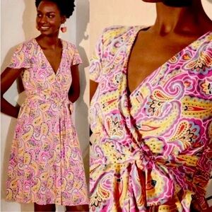 BODEN Evangeline Jersey Faux Wrap Dress Party Pink Summer Paisley Size 6 NWT
