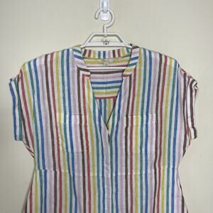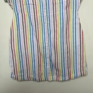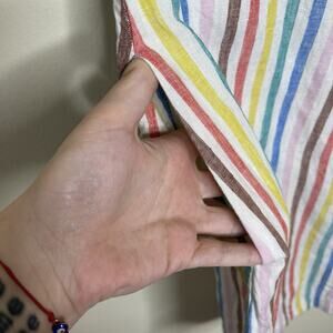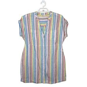 BODEN Evie Linen Shirt Dress Rainbow Stripe Pockets Cap Sleeve Summer Sz 12P