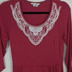 BODEN Faye Dress Jersey Knit Stretch Wh733 Midi Long 3/4 Sleeve Embroidered 4L