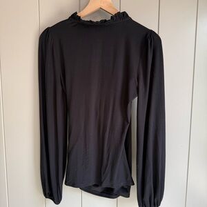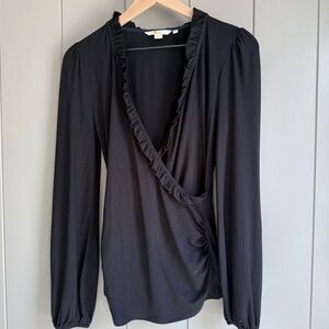 BODEN Fixed Wrap Blouse Top Women’s Ruffle Frilled V Neck Black Ruched Sides 6