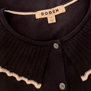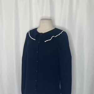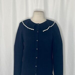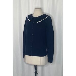 BODEN Frill Collared Wool Blend Cardigan Sweater Navy Blue White Preppy X-Small