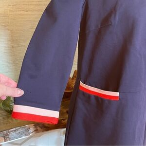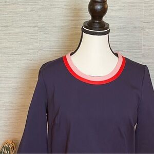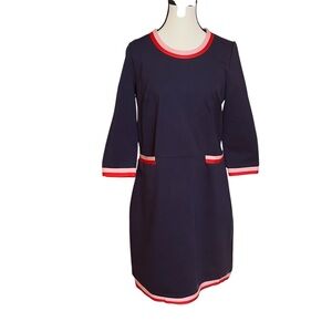 BODEN Gloria Ponte Knit Dress Navy Blue Stripes Retro 60s Shift Pockets Size 12