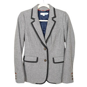 BODEN Grey Wool Blend Fitted Blazer Black Trim Two Button Women's UK 6 US 2