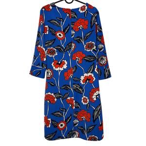 BODEN Isabelle Floral Print Wiggle 3/4 sleeve Shift Dress Blue/Coral-Size 8R
