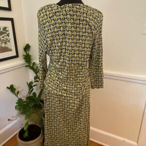 BODEN Jersey Knit 3/4 Sleeve Midi avocado/olive dress green, blue white size 18L