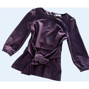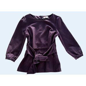 BODEN Josephine Ponte Knit Tie Front Purple Eggplant Top Shirt Sz 8