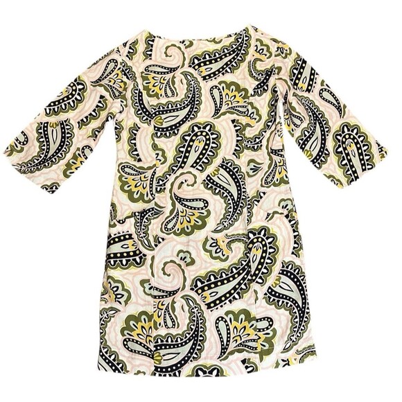 BODEN Laurie 100% Linen Paisley Print Shift Dress 3/4 Sleeve Pockets Preppy Coastal Women's Size US 2R UK 6R
