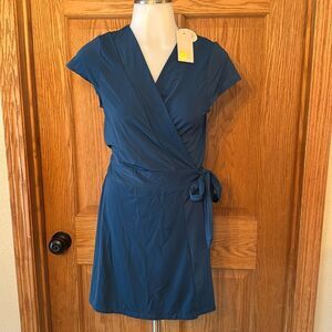 On days when poolside lounging is top of the agenda, turn to our wrap beach dress & swim cover-up. It's easy to slip on and super-flattering, thanks to a wrap design that ties neatly at the waist. A v-neck and short sleeves mean it's light and breezy. For sustainability, we've made it with nylon crafted from recycled materials.