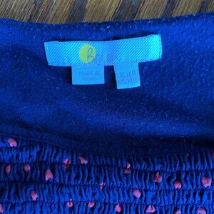 BODEN Lena Dress sz 12 Navy & Red Polka Dot Smocked Bodice Long Sleeve Knit