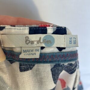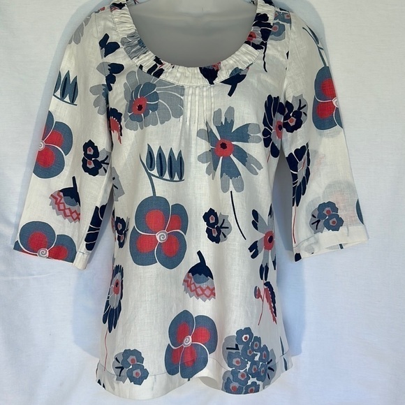 Boden Linen Floral Tunic Size 2 Zips at side elastic at shoulders Pintuck front