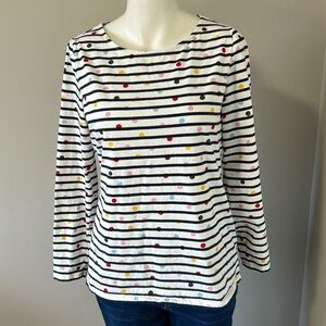 BODEN Long Sleeve Breton Stripes Ahead of the Rest Shirt Polka Dot Top Sz 10