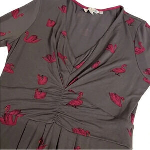 BODEN Marion Swans 3/4 Sleeve Vneck Stretchy Comfy Viscose Mini Dress
