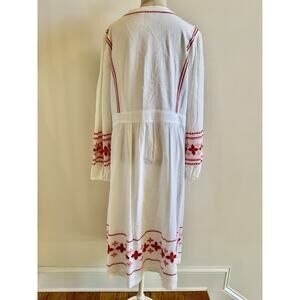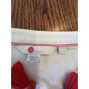 BODEN Marla Embroidered Dress 16 White Gauze Midi Boho Tassels Zip Beach Chic