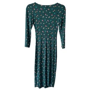 BODEN | NWOT ROSALIE TWIST FRONT JERSEY DRESS POLKA DOT DARK GREEN | 2 PETITE