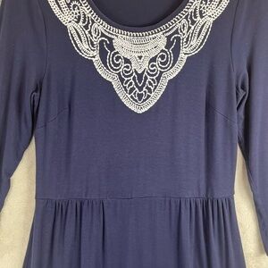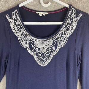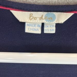 BODEN Navy Blue Dress Size 6 Embroidered Neck