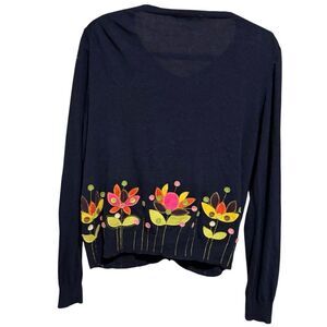 Chic navy sweater with vibrant floral embroidery. Perfect for adding a pop of color to your wardrobe.