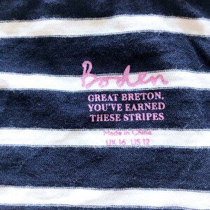 Boden navy white stripe short sleeve shirt. Size US 12, 100% cotton. Excellent pre-owned condition. Smoke and pet free home.