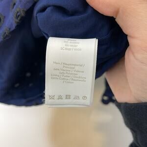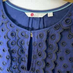 BODEN Navy and Black Eyelet Scalloped Detail Viscose Blend Long Sleeve Top Size 8. EUC. Cute and girly. Hook and eye front with keyhole detail. Feminine.
