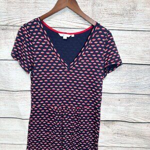 BODEN Penelope Dress Womens Size 8R Navy Blue Red Pink Kiss Lips A-Line Short Sleeve V-Neck Pullover